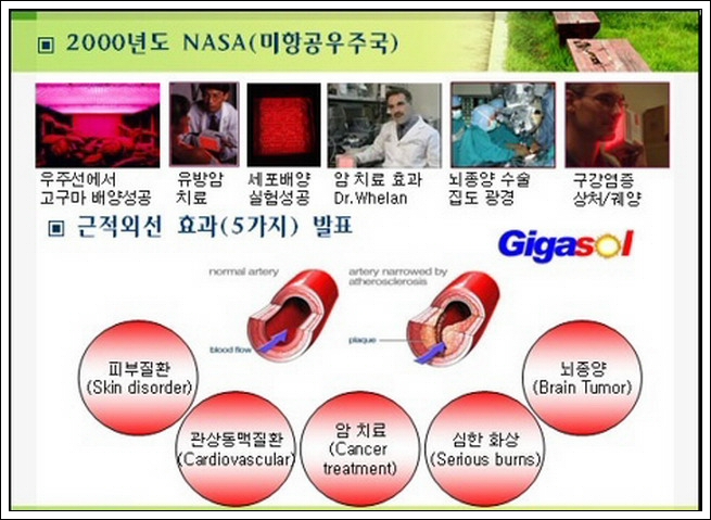 지난 30년 이상 NASA(미항공우주국)에서는 광치료 요법을 이용하여 우주인 들이 건강을 유지하는데 사용해 왔으며, NASA와 각국 의료계에서 '생명의 빛'이라 불리는