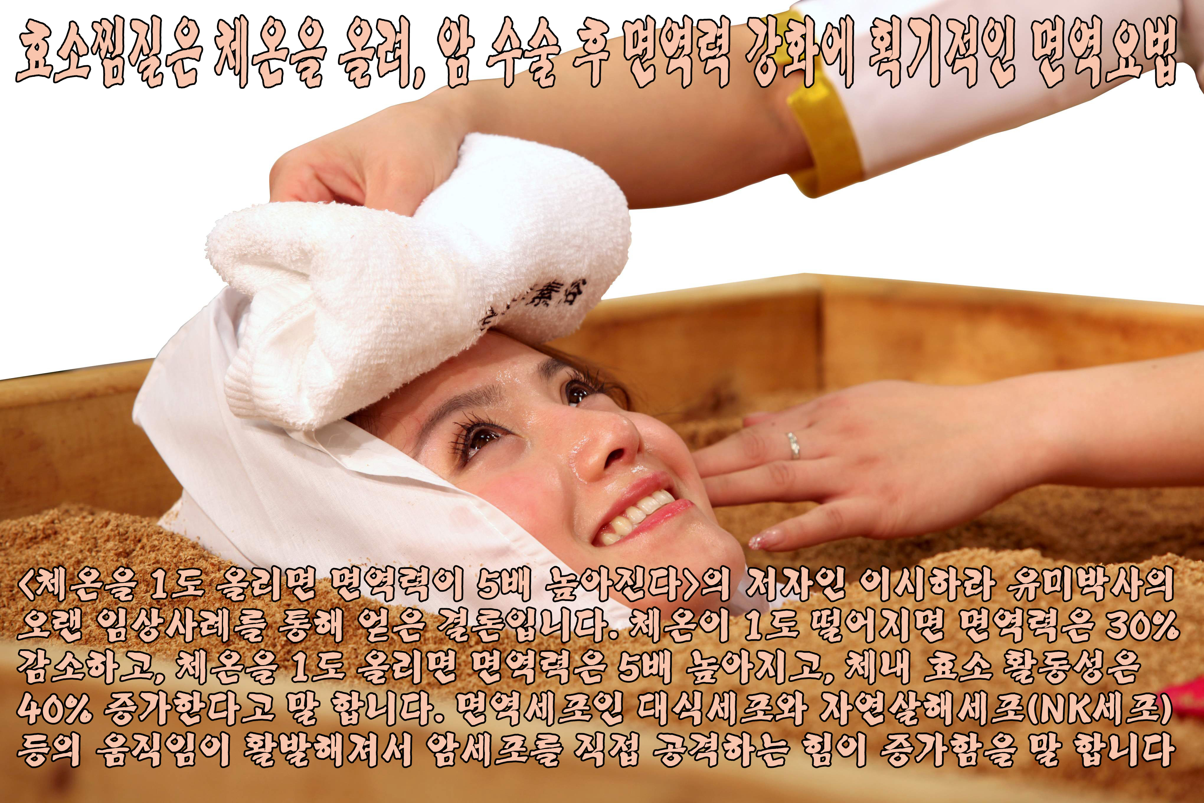 이는 일본의 저명한 의사인 오카자키 타모츠박사의 '체온을 1도 올리면 자가면역력은 5배 상승한다'라는 책에도 잘 서술되어 있습니다.